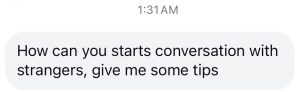 “Give me some tips to start conversations with strangers.”
