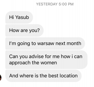 “Can you advise where to approach women in Warsaw?” — People even ask for city-specific tips.