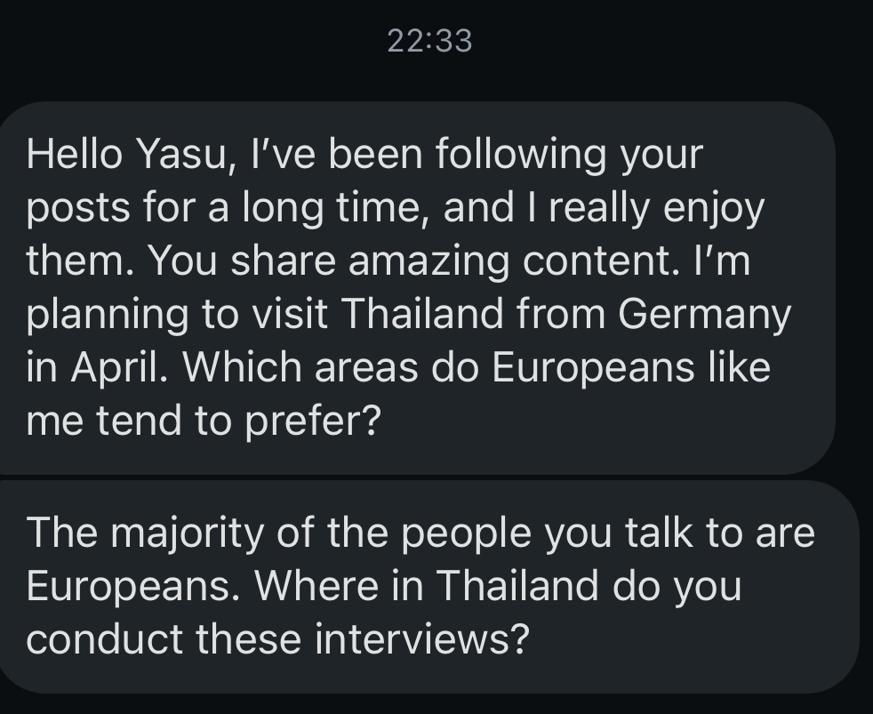 My name is YASU. Over the past 10 years, I’ve approached more than 20,000 strangers — in all kinds of places: on the street, in cafés, shopping malls, bars, clubs, beaches, pools, music festivals, and even online. I’ve interviewed over 1,500 people around the world, and built meaningful connections across cultures — often in minutes, not months.
